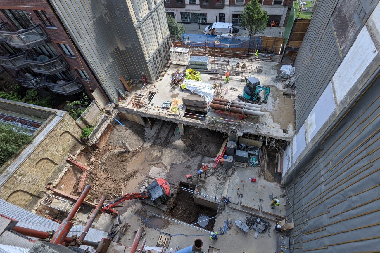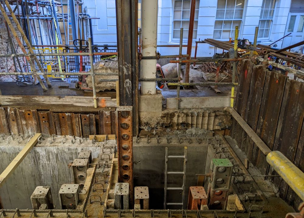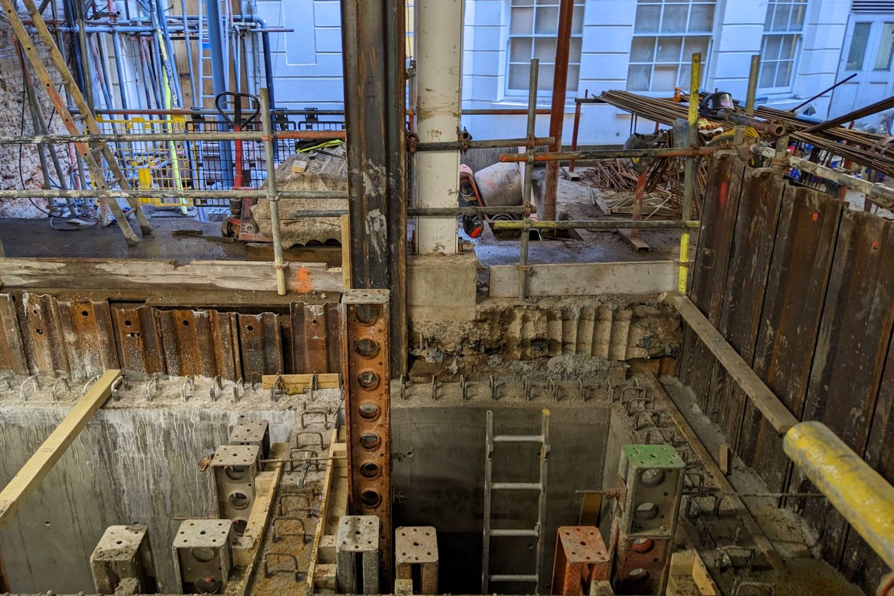 Structural modifications and strengthening works were required throughout the intermediate floors to create spaces for suites with high-specification finish. An existing 5-storey concrete frame office was demolished to lower ground level in Brook’s Mews, whilst retaining the piled basement structure, which remained occupied throughout the works.