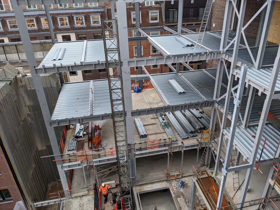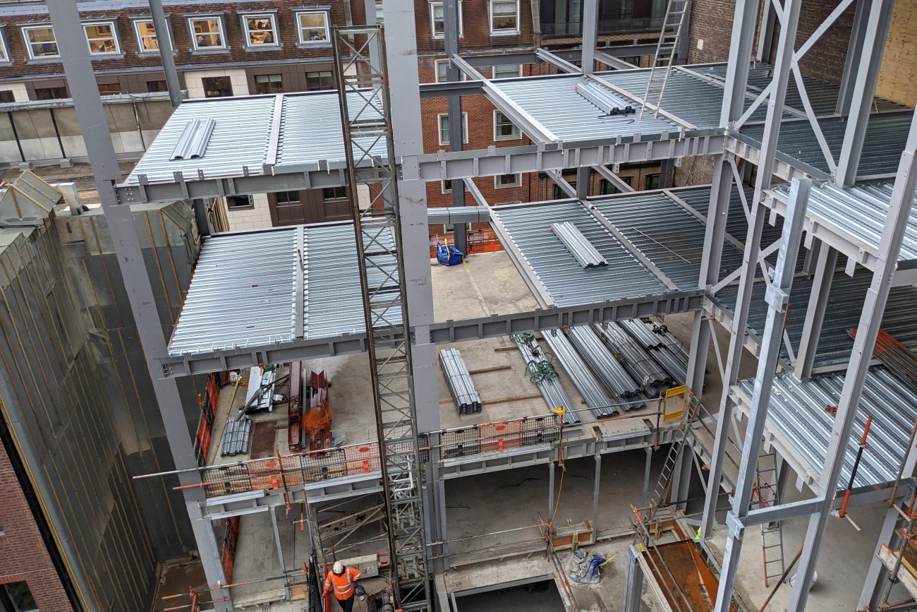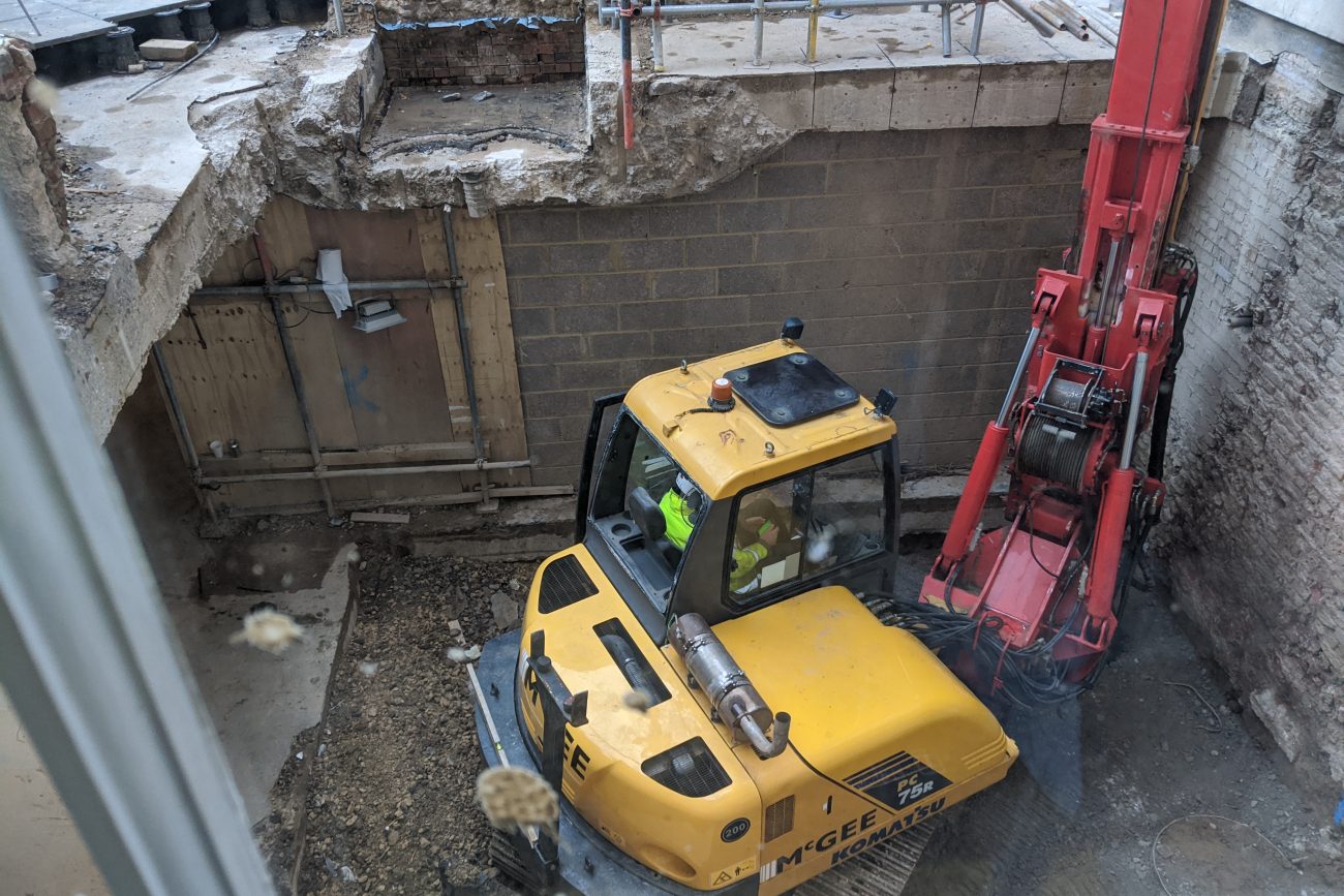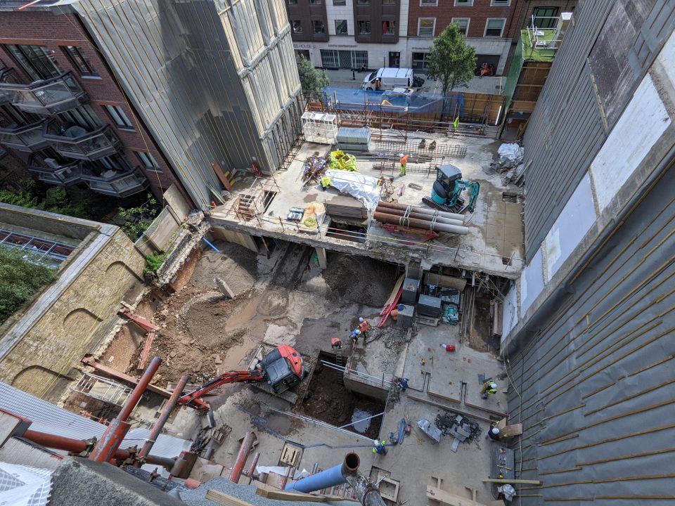Structural modifications and strengthening works were required throughout the intermediate floors to create spaces for suites with high-specification finish. An existing 5-storey concrete frame office was demolished to lower ground level in Brook’s Mews, whilst retaining the piled basement structure, which remained occupied throughout the works.