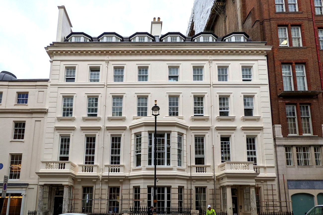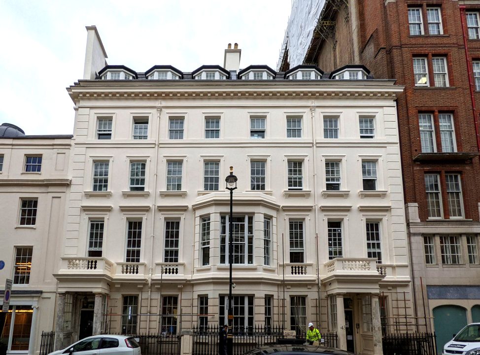 The project’s scope included the repurposing of existing office spaces within the Grade 2* listed Brook Street building to create full-floor hotel suites, with high-end retail units located at ground and basement levels.